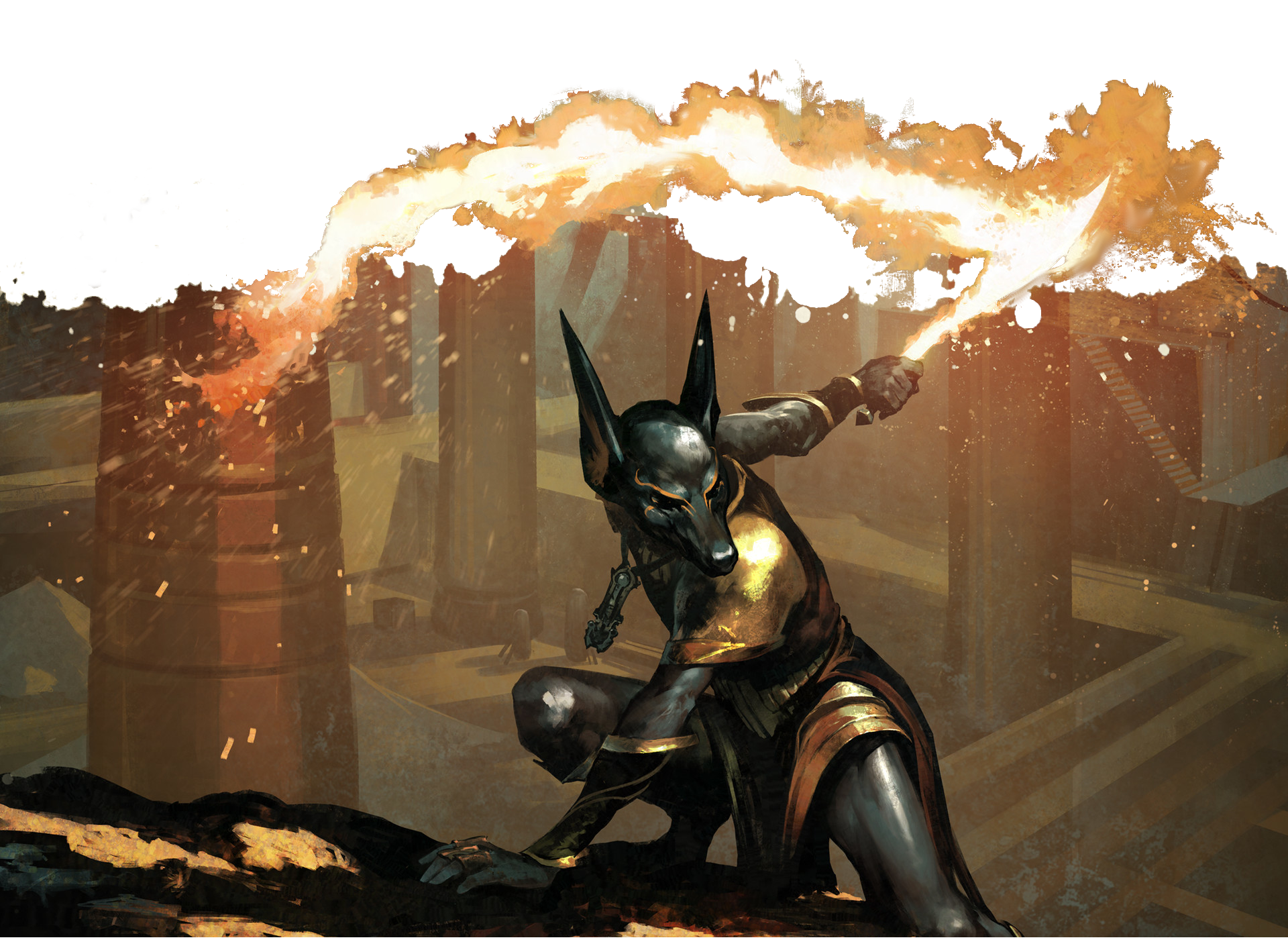 Warlords, prophets, and warlocks formed small vassal communities in service to the young gods or cunning jinn. In time these nomadic tribes established fortified towns. From these first steps towards civilization, the great cities of Salmshar, protected by Nesmsir, god of fair waters and good fortune, and Turasthan, guided by the doctrines Maniya, goddess of fate and death, rose from the sands. Eventually, these cities attracted smaller communities to their banner and protection, and the