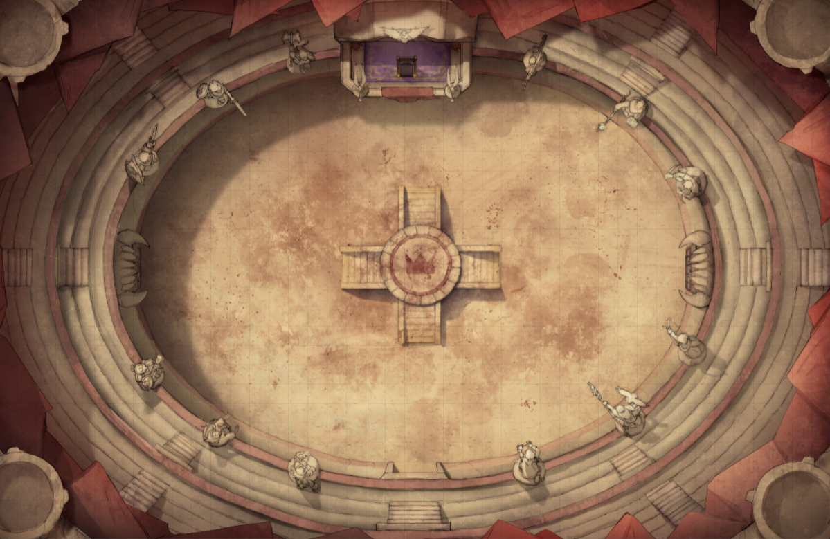 The two Teams face a captured monstrocity ran by an independent third player, usually an elite-adjusted creature of level equal to event level plus 3. The monster is released through the monster pit at the start of 2nd turn. Both teams must make their best to survive by defeating the deadly threat with least of losses. The team that delivers the death blow to the monstrocity gain immediately 2 Hero Points.