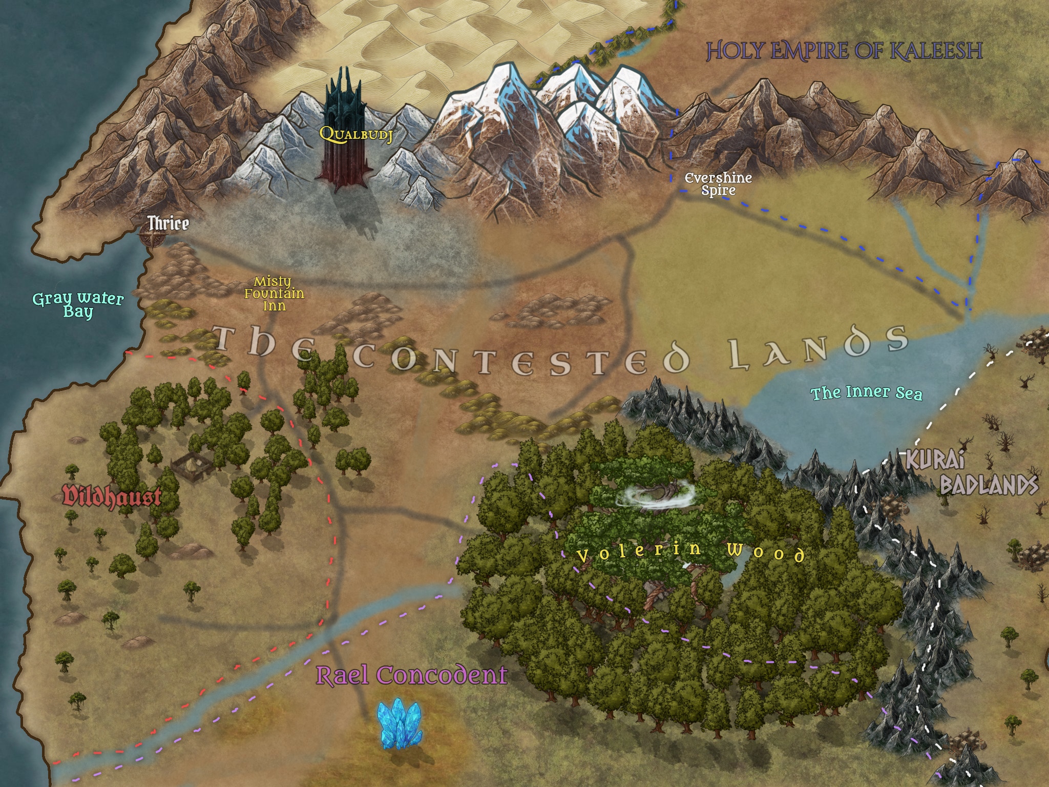 There is an old saying in the Contested Lands, "There are two things in this world that are certain: death, and that the Rael Concordant are still in debate over the second." Though the Concordant has highly efficient society ruled by a diverse and wise council, they also tend to cling doggedly to their many, often conflicting, philosophies. The traditionalist and preservationist factions are often at odds with the more innovative mages' desire to adapt and progress. One of longest running debates is to focus the Concordant's resources on protecting the great Volerin Wood from the ignorant, the ruinous, and the greedy, or a return to expansion in order to explore the greater mysteries of the continent including the enigmatic Qualbudj.
