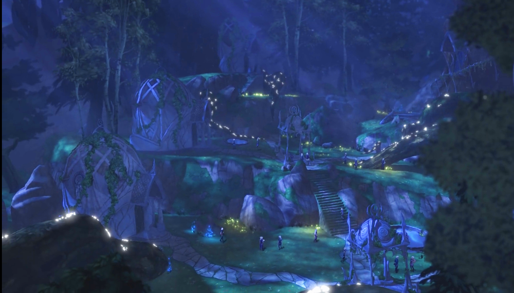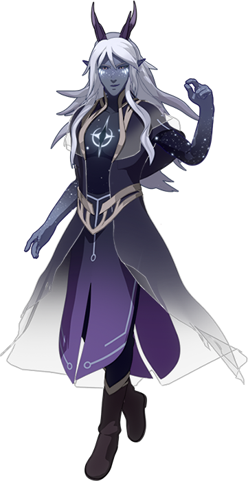to Vil'ron. They are connected to the magical energy of the stars and are direct descendants of the creator of the Universe - the Madam. These elves are tall and slender, have midnight toned skin in various colors of blue and purple, with hints of soft gold or silver. Their hair comes in other pale metallic or pastel colors. Star-like designs adorn their bodies and they have unique horns growing from their head.