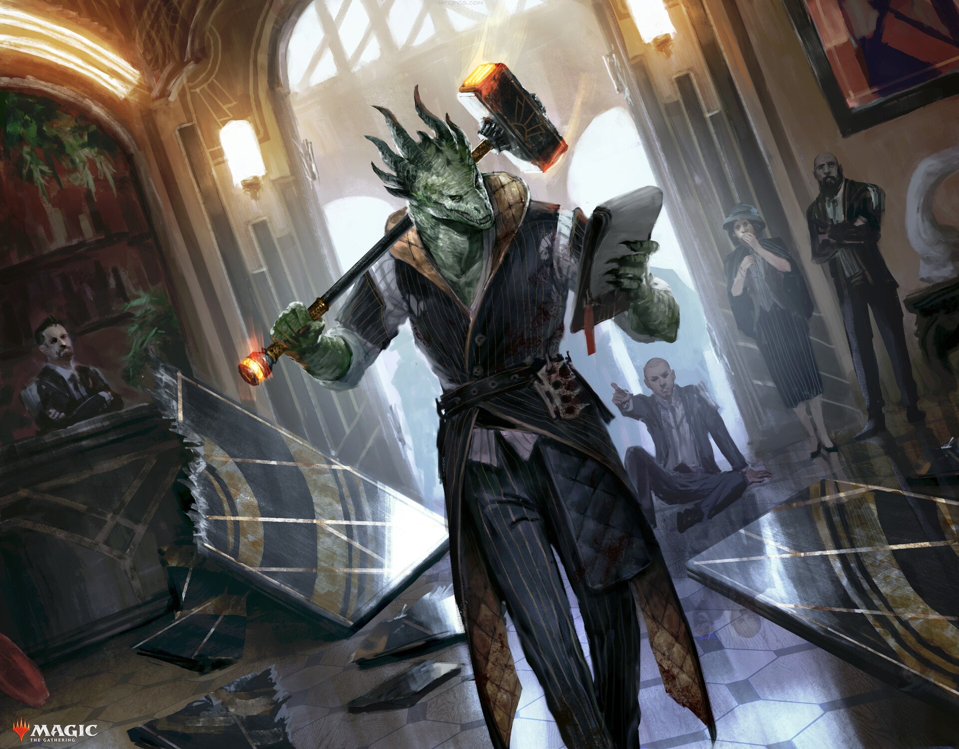 A human stares down their opponent from across the arena, sabre held loosely at their side. When the duel begins, they swing their weapon upward as electricity races across its surface, culminating in a deafening boom of thunder as summoned lightning courses towards their foe.