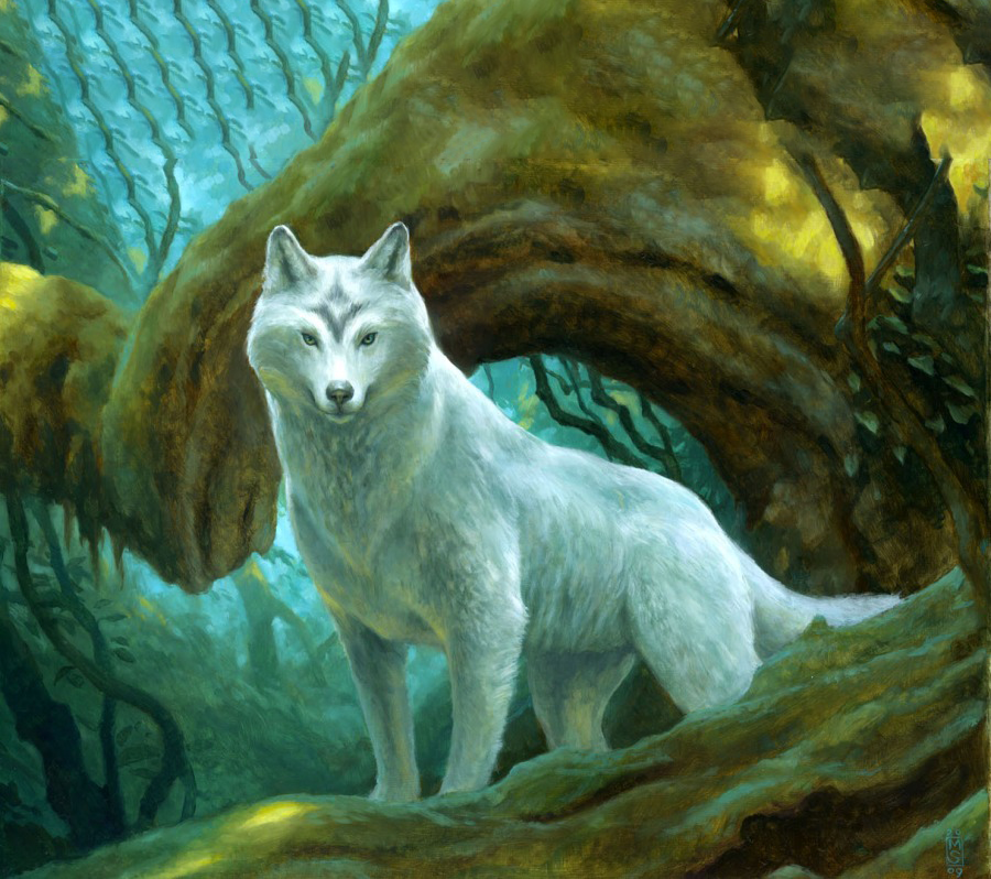 His blood ran cold as he realized that more than a dozen white wolves were arrayed around him. Very slowly he drew his sword, but there was no way he could possibly get more than one hit in before they tore him apart.