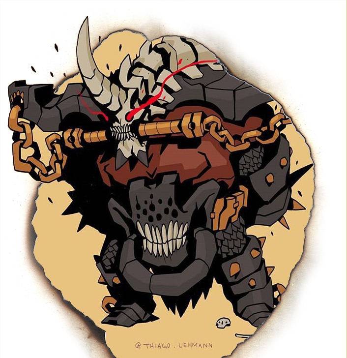 Lust is a monstrous bull of rippling muscle. His giant minotaur-like body is drenched in the stench of sweat and other bodily fluids.