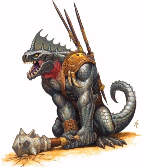 Dragon-blooded lizardfolk are lizardfolk infused with the might of dragons. They could originate from dragons performing experiments on standard lizardfolk or interbreeding.