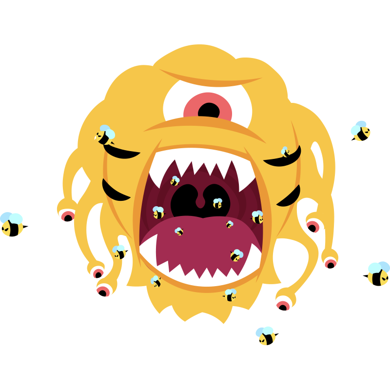 A bee-holder retains a symbiotic relationship with the bees inside it, using them to defend itself as well as hunt for unsuspecting prey. Researchers are unsure why they so closely resemble other aberrations, despite sharing little to no actual genetic heritage. I guess sometimes magic just be like that.