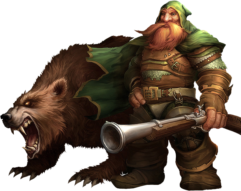 The hunter is a stalker in the wilds, living on his knowledge of survival and skill with a bow or rifle. He is deeply in tune with nature, and some of its mightiest beasts are his allies.