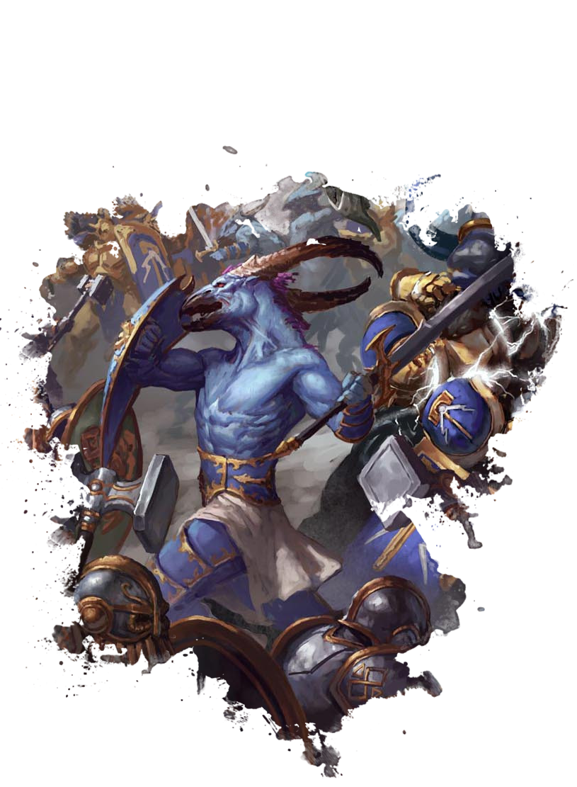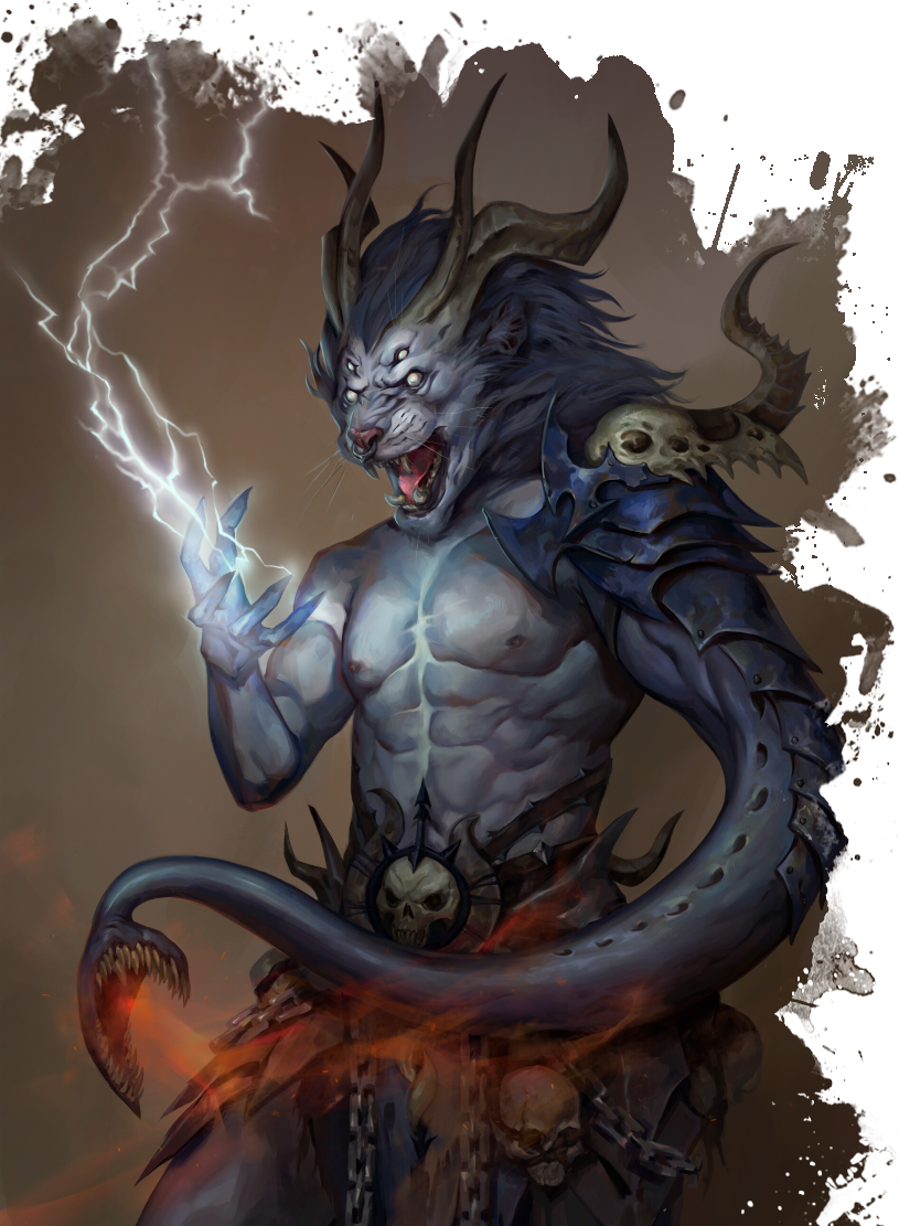 Unable to contain their anger, a goliath roars a promise to their patron, their body fueled by demonic magic, and leaps into battle in a frenzy.