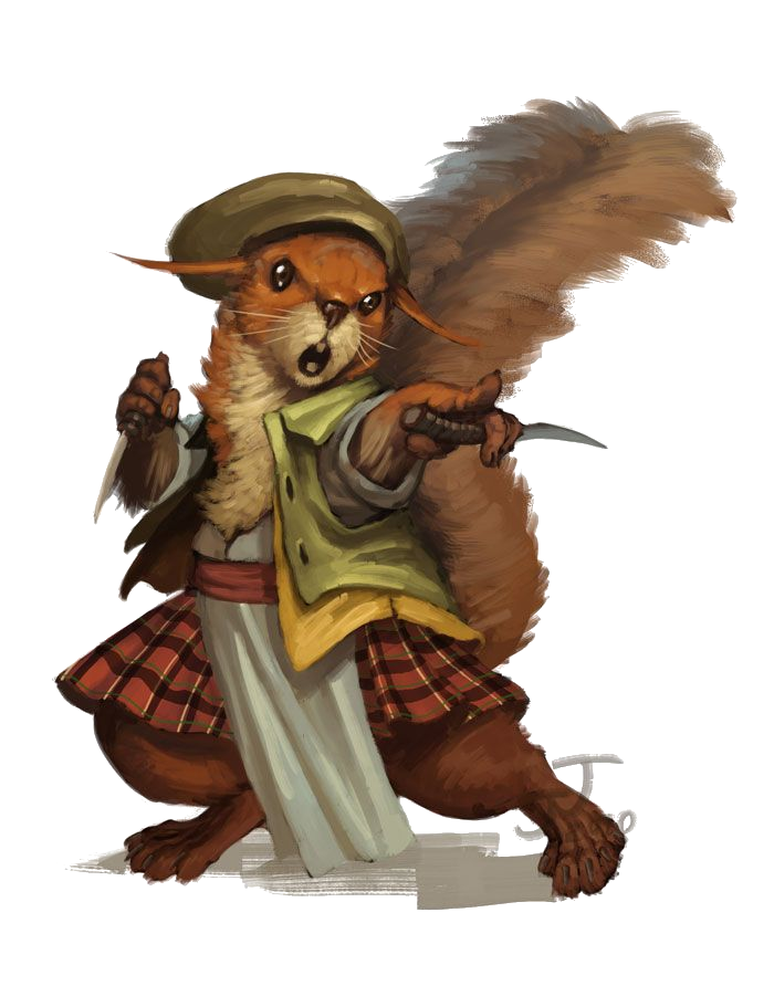As bitter rivals of the mouse wealdkin, squirrelfolk are extremely competent warriors. Not only are squirrelfolk able to hold their own against the insidiously ingenious mousefolk, but they're able to project their power. Squirrelfolk regularly show off their might with parades and demonstrations, and they're known for their large egos.