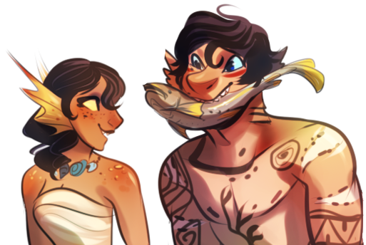 As a tidal bucca, interaction with other races has been unavoidable. In fact, many tidal buccas integrate heavily into local societies. Some even trick people into bringing them gifts in exchange for empty blessings. Others are either less mischievous or less selfish, and choose to become fishermen or craftspeople in order to earn their bread.