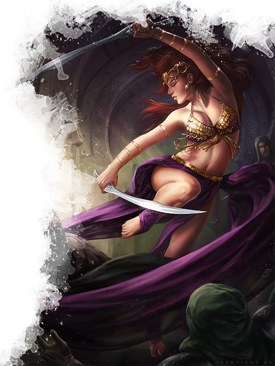 Amidst the bustling taverns, and raucous inns, bards fill the stages spinning wondrous tales as lute and viola strings plink and plunk out amazing tunes to go alongside them. Some seek to tell stories of heroes and monsters, of damsels and pirates. Some instead focus on the more coarse melodies to fit the raucous fair, but a few stages support a different entertainer to accompany the lovely sounds, a true Dancer.