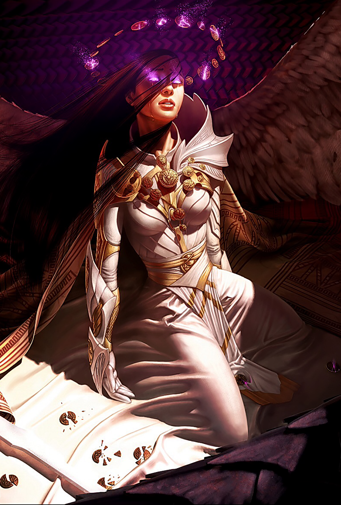 These aasimar are blessed with the holy power of the Ophanim, the Many Eyed Ones, angelic beings that consists of rotating wheel-like rings covered in eyes that display a divine fiery fury.