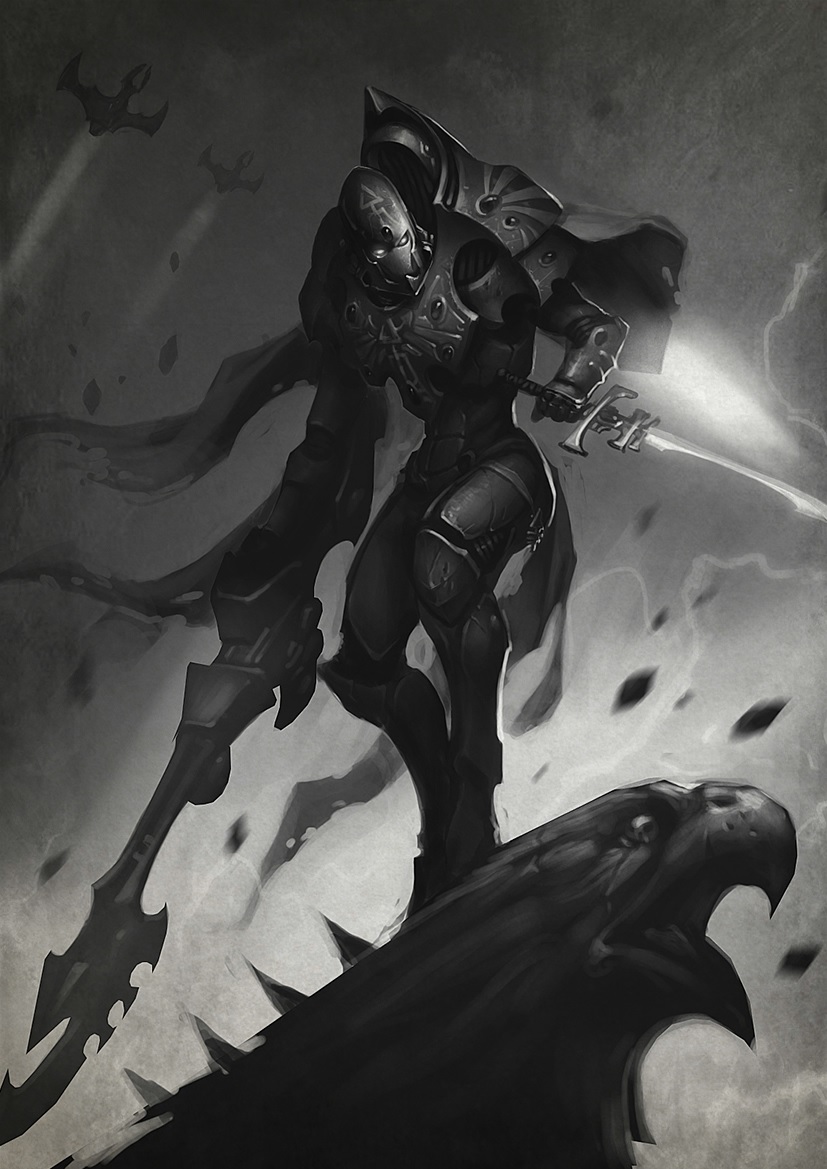 Reaving upon this abandoned world, they struck against Faraethil in glee as the Avenger stood once more alive. Discarding the name he had once known, he took upon himself the title of Asurmen, after the leader of those gods who had saved him. Drawing his weapon, he brought devastation in sublime grace against his cousins, leaving their bodies as broken as the souls that were once within.