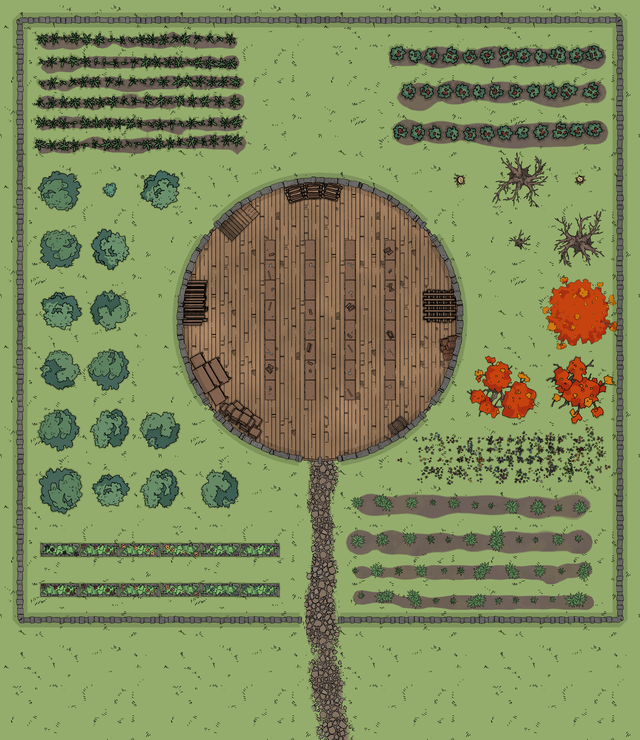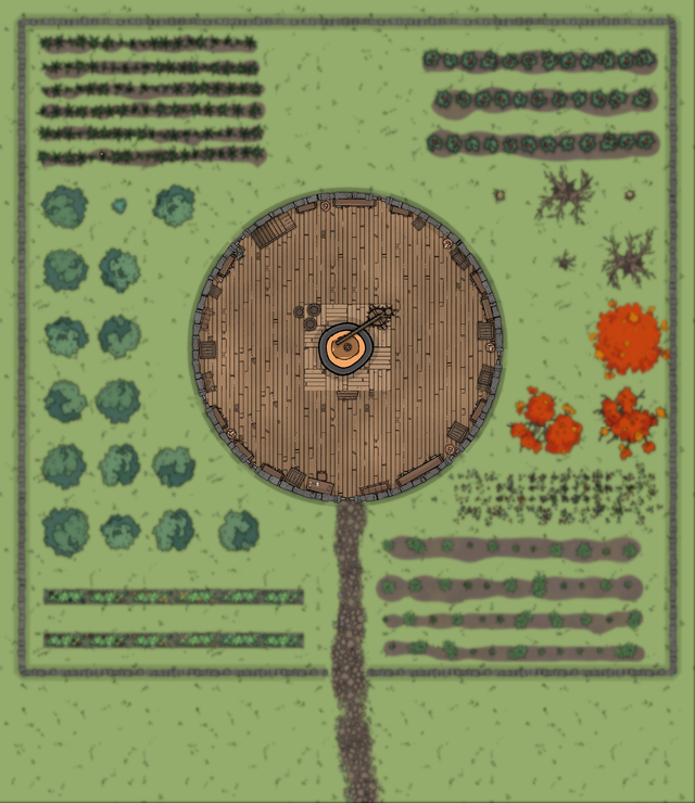 The mill is surrounded by a 10 ft. high stone wall that is a square which is 150 ft. on one side. Within the walls is a large garden of alchemical herbs, fruits and flowers. Paths of stone snake throughout the garden and there is a single gate directly opposite the front door of the mill with a path leading directly to it. This gate is guarded at all time by two denizens. They can be easily tricked into letting the adventurer’s in but will promptly notify Alistair of the adventurer’s arrival by walking off without saying a word.