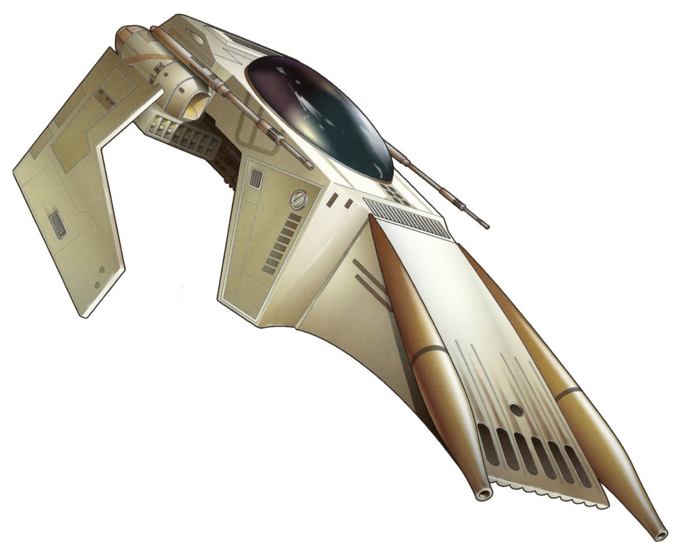 Loronar began its B-7 line of Medium Transports a century before the Clone Wars, and continued production up until the introduction of its E-9 Explorer. Its sturdy design made it popular as a passenger ship until competing firms produced more popular lines of starbuses. Despite its ungainly maneuverability compared to similarly sized transports, the Medium Transport was favored by some smugglers for its durability and adaptable interior. Though eclipsed by the E-9 in relative popularity, the ship remains popular among collectors.