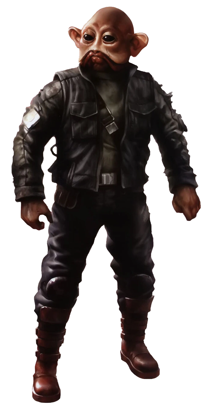 Mog is heavyset for a Duros, with crimson eyes set deep into his dark blue face. With his patched and stained coveralls, the Duros looks like just another dockworker, but a badge bearing the symbol of the New Republic stands out on his chest. Mog checks the datapad he’s holding and looks up to scan the crowd. When he sees the PCs, he raises a hand in greeting and gives them a friendly smile. Before the PCs can return the greeting, however, the air is suddenly filled with laser blasts as the Kings and the 21 Crew open fire on each other. Bystanders scream and flee in terror, diving for cover or milling about frantically. Mog freezes, paralyzed with fear.