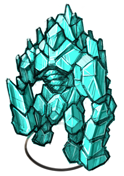 Ethereal Crystal Golem - The ethereal crystal golems attacks any living creature which approaches within 30 ft of it. It normally does not chase any creatures beyond 60 ft from it's original post unless it continues to be attacked. Garuthan can use the ethereal mirror in the north of Area 12 to see through the golem and take direct control of it.