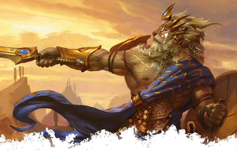 Bellowing over the top of the din of battle, a muscular tabaxi steels his allies, readying for the final push into enemy lines to end the pyrrhic struggle.