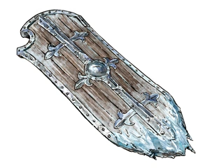 This massive, rime-crusted tower shield is crafted in a manner that blends the styles of Netheril with those of the Undomaar. The long, convex surface radiates excruciating chill.