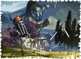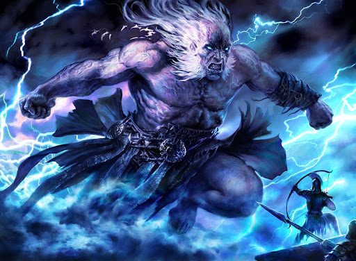 He Who Moves Mountains by Rob Joseph, Dagda by Koei, Kalemne's Captain by Tomasz Jedruszek, Rune by fosterchild, Thryx, the Sudden Storm by Matthias Kollros, Bearer of the Heavens by Ryan Alexander Lee, Aegar, the Freezing Flame by Chris Rahn, Ancient Giant by Bethesda, Giant Warrior by Velinov