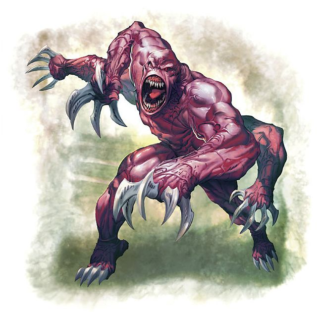 Born from blood. During the great tempestuous coalescence of what is now known as the Elemental Chaos, one of the great Primordial Lords, Haemnathuun crafted these abominations. Like the other titans who spawned their children in their element, these creatures born of blood sought the very essence of which they were made. Ravenous beasts, driven by instinct and a hunger that would not be satiated, these beasts would soon become very common throughout the planes. Especially in the hells, the abyss and in the material. They would be deemed Blood Fiends.