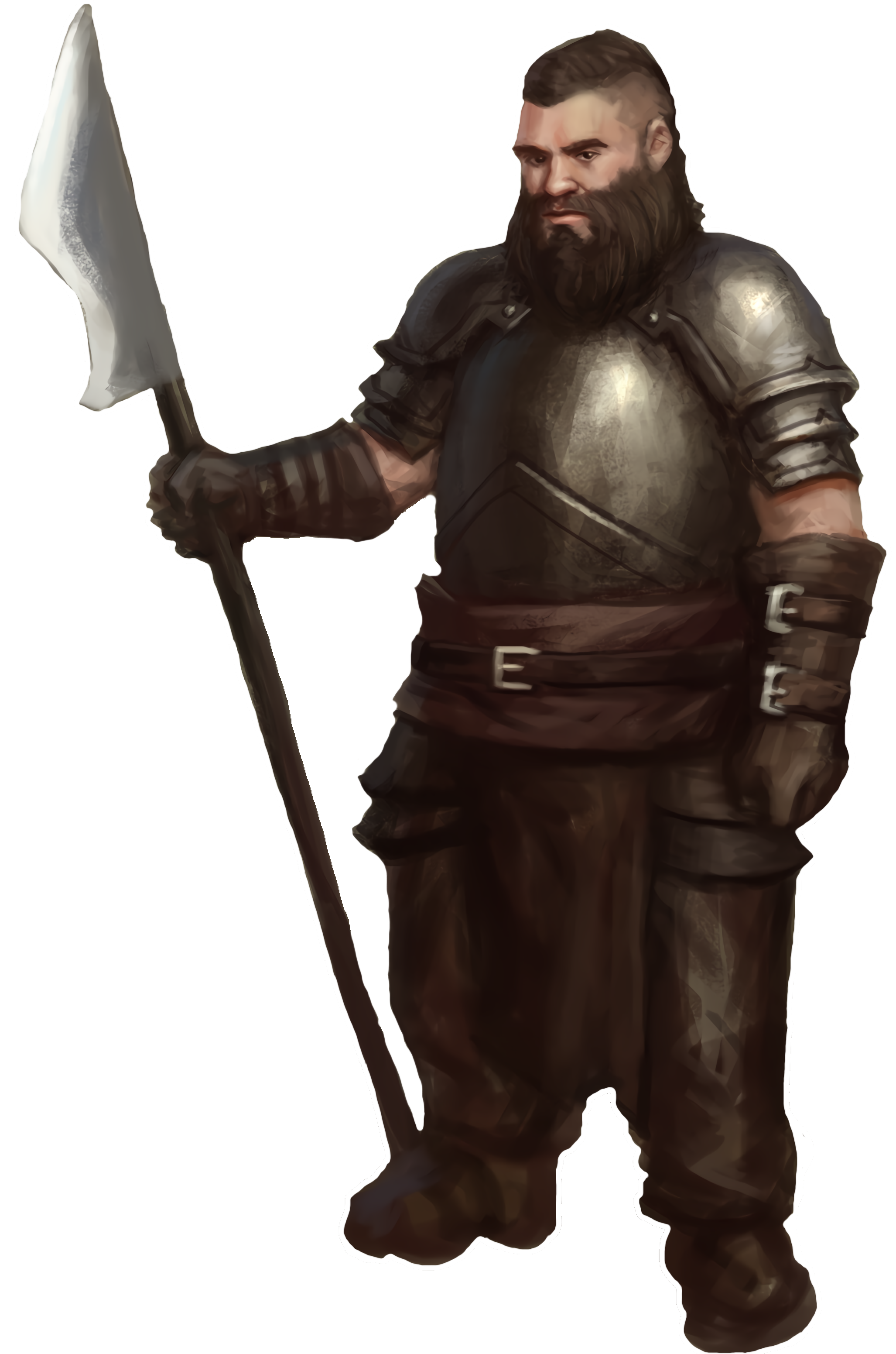 Half-dwarves are the offspring of a human and a dwarven parent, an unusual pairing that has become increasingly common in the decades following the foundation of the Mining Guilds in Valonde. Humans often venture into these lands for work, supplies, or recreational drinking, with some of these journeys resulting in love and sometimes a child.