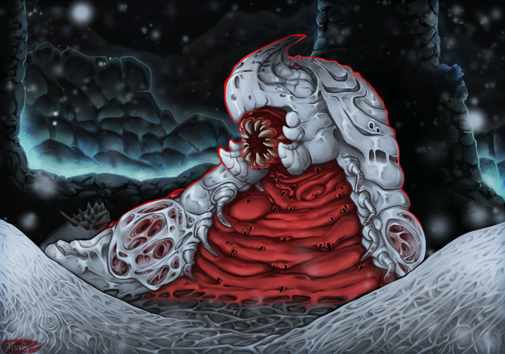 Stronk stares Onyx down with his cursed eye, deforming Onyx and debilitating him. As Stronk approaches Onyx, Alexander casts wall of fire, Actarius casts cloudkill, and Wizzy casts wall of force, trapping the fomorian inside. Alexander manages to cure Onyx of his deformation and as the party looks for a way to leave the egg chamber, a purple worm arrives. Actarius attempts to distract it with several giant centipedes and Wizzy polymorphs it into a killer whale. The party then flees towards one of the new passages created by a worm. As Wizzy enters the passage, a darkness spell envelops the egg. We can hear some sort of commotion coming from inside the darkness.