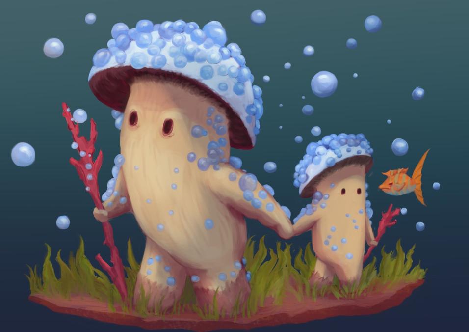 The Fish Kingo (Psathyrella aquatic or Gilled Fungi) are an aquatic Fungi that live on the coastlines as well as in the ocean depths. They love to swim and play with the fishes (Fishes being anything that breaths water). They keep to themselves, sometimes acting as lifeguards, or warning beach-goers about dangerous waters or creatures. The Triton are their favorite people, as often the fish Kingo think they’re just weird looking Kingo