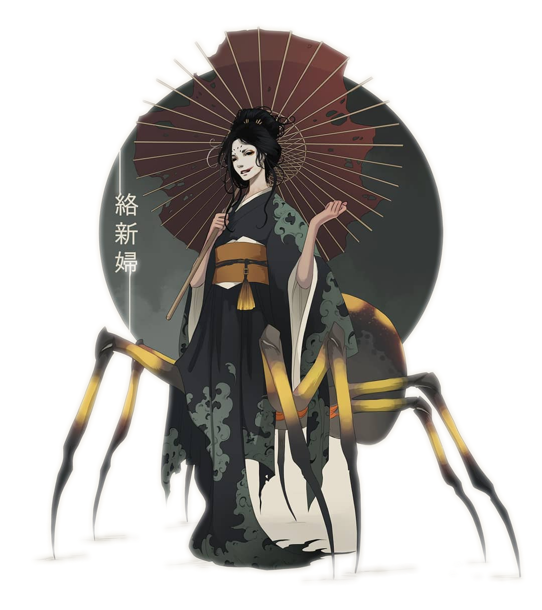Elder Spiders. Like many of the creatures who live withing the Seishin Isles, when a spider reaches the age of 400, it undergoes a change, transforming it into a jorogumo, and granting it a mortal form. Once a spider has completed their transformation into a jorogumo, they must seek out new pray to maintain their new formed, the likes of insects and birds no longer sustaining themselves.