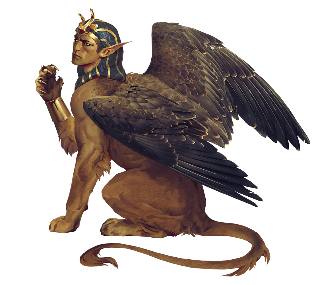 Gods place sphinxes in the Material Plane to guard treasure and information. Many quest seekers come to them for that reason, but must pass tests to leave safely. Very rarely, a mortal impresses a sphinx so much that they reward the person with powers similar to their own. This can also be considered a gift from the deity that created the sphinx. The aasimar are especially likely to be chosen this way.