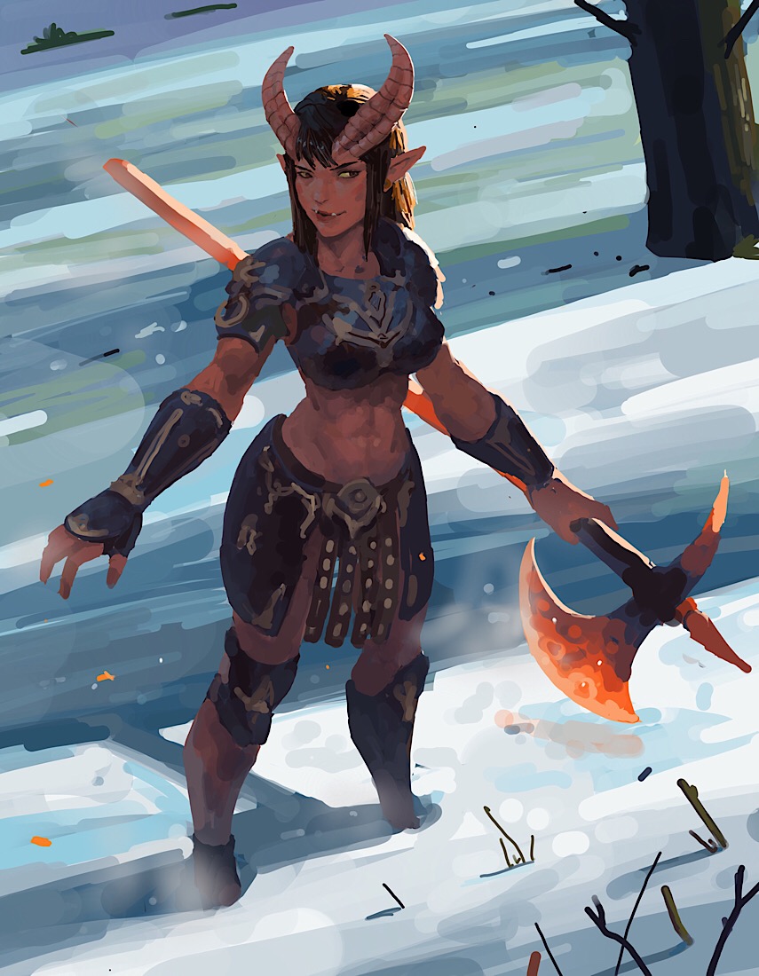 Art (Page 62): u/JamesNathanielArtist: DnD character commission - Norrias. Tiefling rogue (Link)