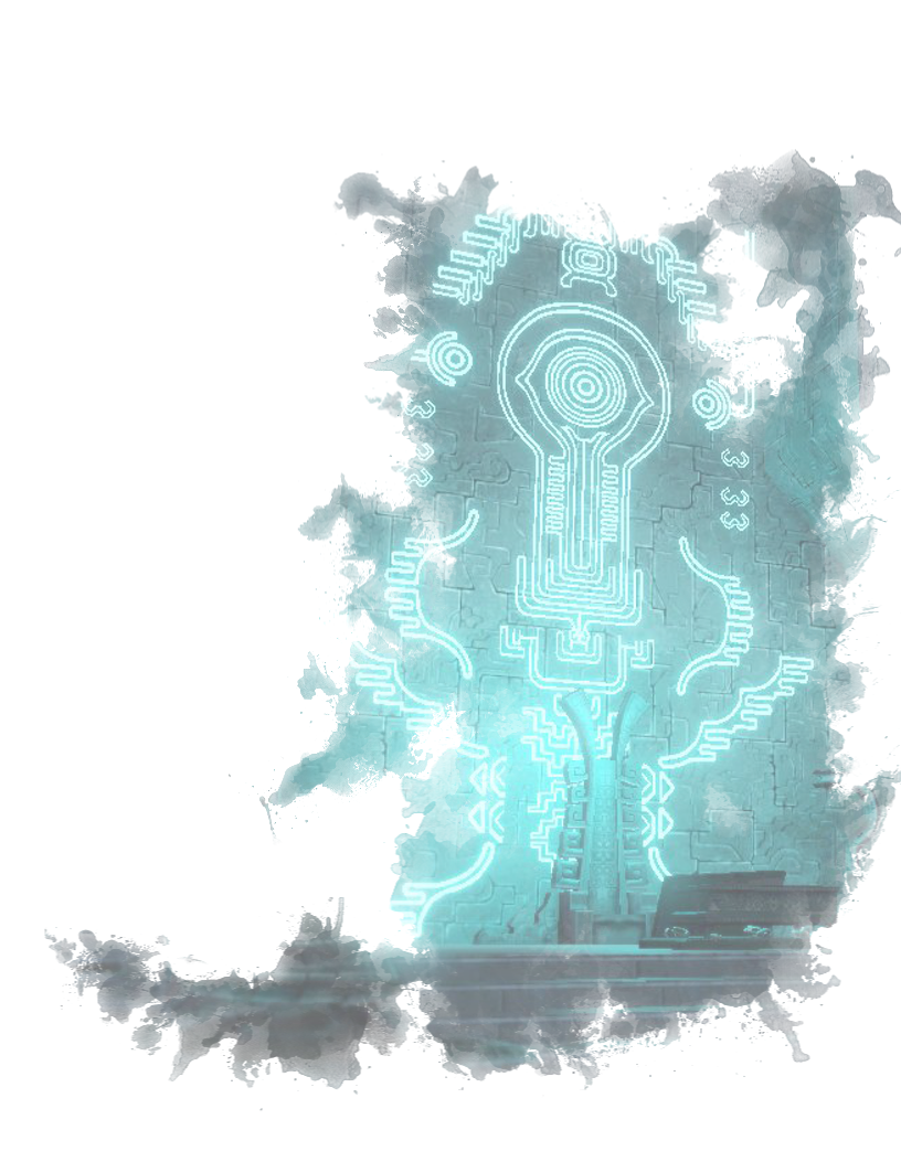 While much about the tribe and their history is shrouded in mystery, one recurring reminder of their connections to various times, places and objects is their symbol, an eye with three pointed lashes atop, two curling on each side, and a tear drop. This symbol can be found on various objects around the land.