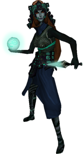 The Twili are shadow beings who inhabit the Twilight Realm. They are descendants of a tribe of sorcerers of unknown ethnicity referred to as Dark Interlopers, who eons ago were condemned to the Twilight Realm by the Golden Goddesses of Hyrule as punishment for their misgoverned attempt to use magic to claim the Triforce. The tribe lived and evolved in the Twilight Realm for centuries in isolation, mere shadows of what they once were, as over time they grew used to their surroundings and came to accept their fate. While some learned to love the beautiful peace that can be found only in Twilight, it drove other inhabitants mad.