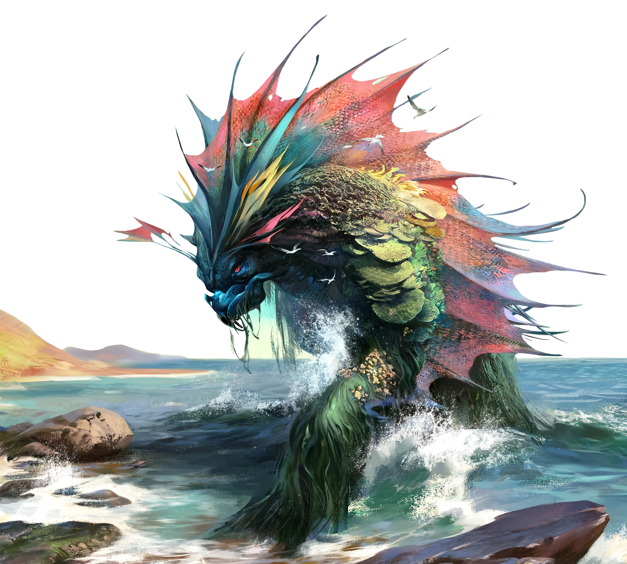 Coastal Protector. Many animals, such as the fish, crustaceans, and birds that inhabit the shallows seem to have a strong respect for the shoal monster. Its presence seems to keep many larger predators such as sharks and rays away from the coast they protect.