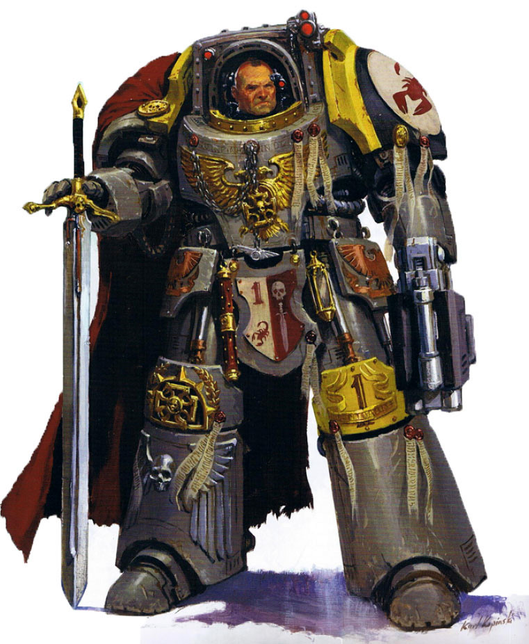 A legendary High-Commander of the Red Scorpions, he would later fall in battle during the Indomitus Crusade and be interred within a Relic Dreadnought Chassis. Known now as "The Risen", his focus on purity and hatred of the mutant has only increased.