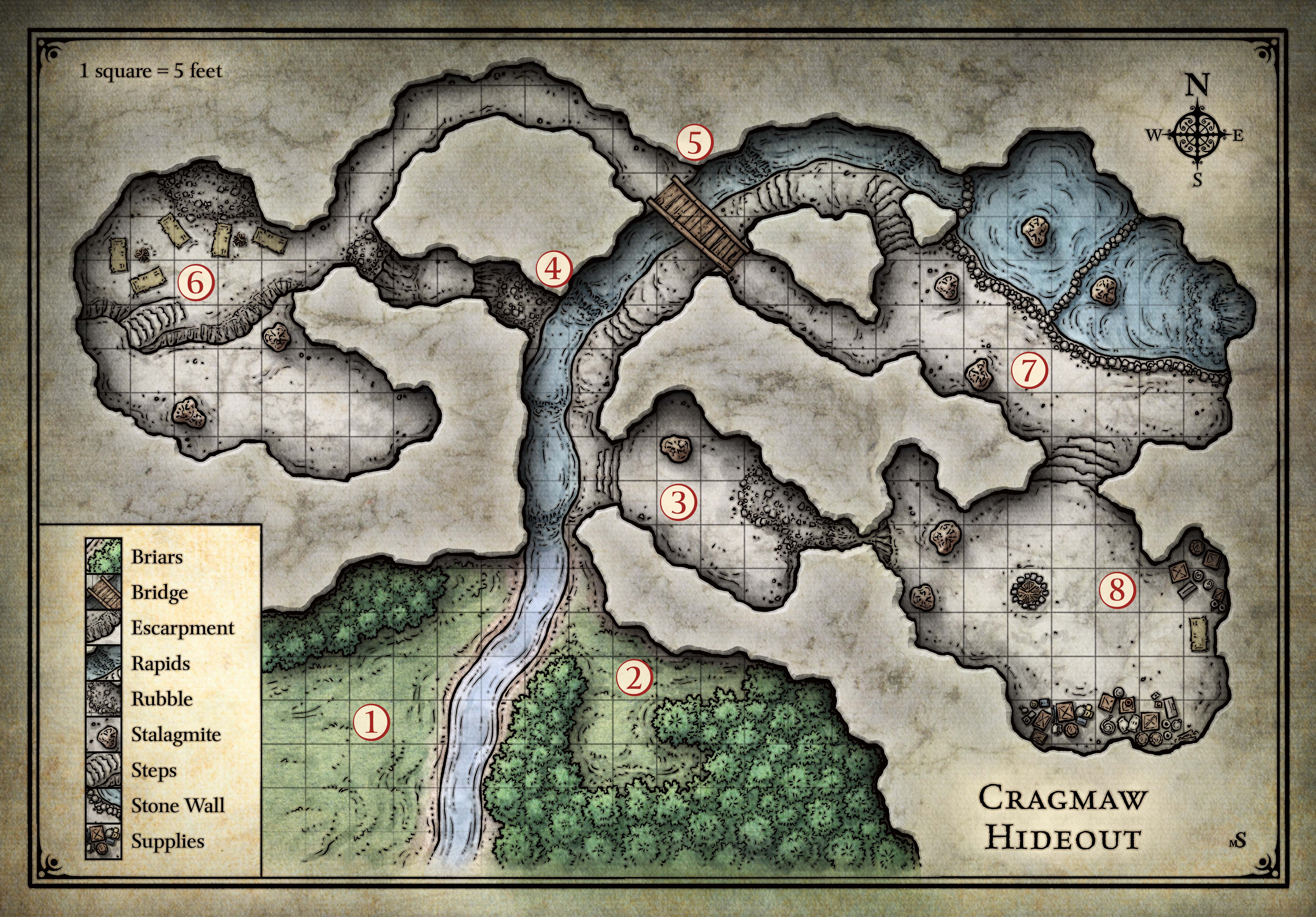 | 6 | Narrow passage. Make a DC 12 Dexterity check (Acrobatics, Athletics, or Sleight of Hand as appropriate). On a failure, lose 2 progress. |