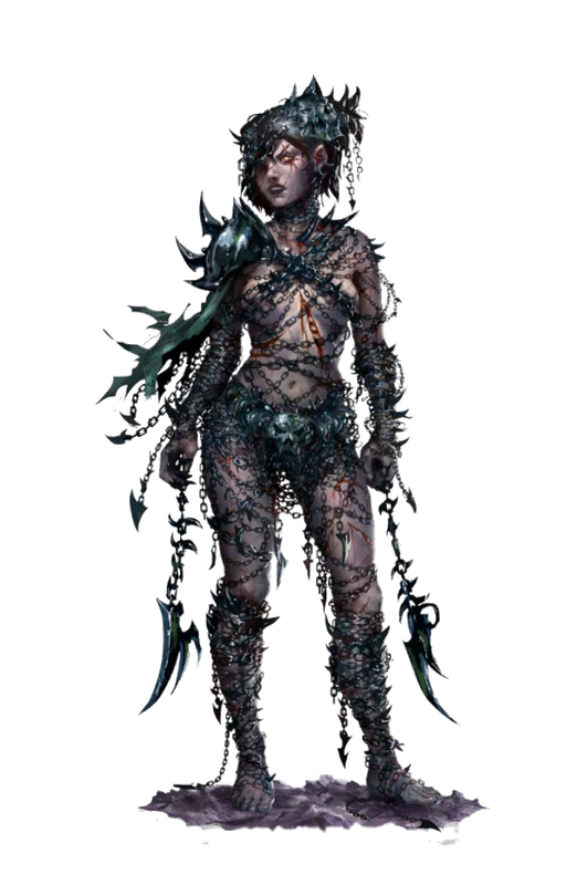 The Order of the Hellspawn uses the secrets of blood magic to explore the further regions of experience. To some, members of this order are demons. To others, they are angels. In any case, they obsess over their knowledge of pain and pleasure. Like the chain devils that created them, they dedicate their hellish blood powers to torturing their prey and making them suffer fates worse than death.