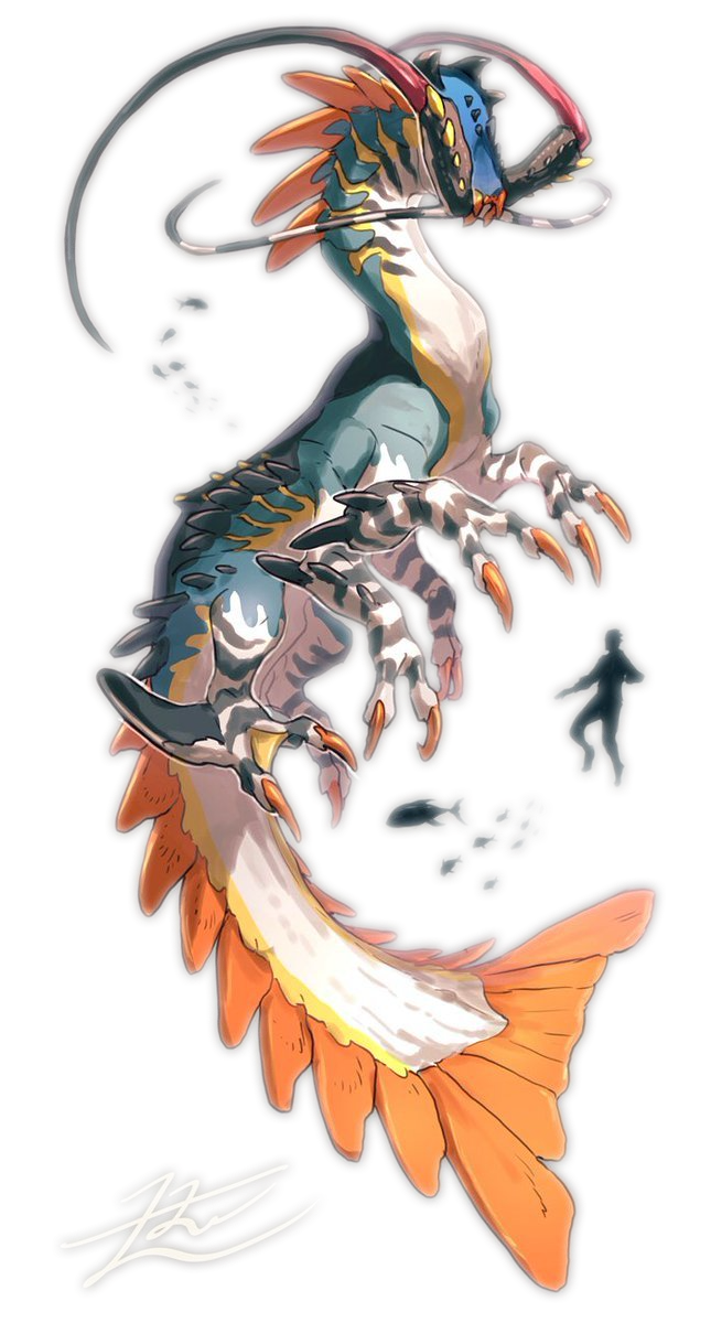 Kings of the Western Seas, the kipawo is an oceanic monster to fear and revere. Prissy and territorial, kipawo hate interactions with surface creatures, preferring to remain underwater unless their presence on the surface of the water is necessary. When confronted, the burning stream of the breath weapon scalds their victims and reduces them to burnt cadavers.
