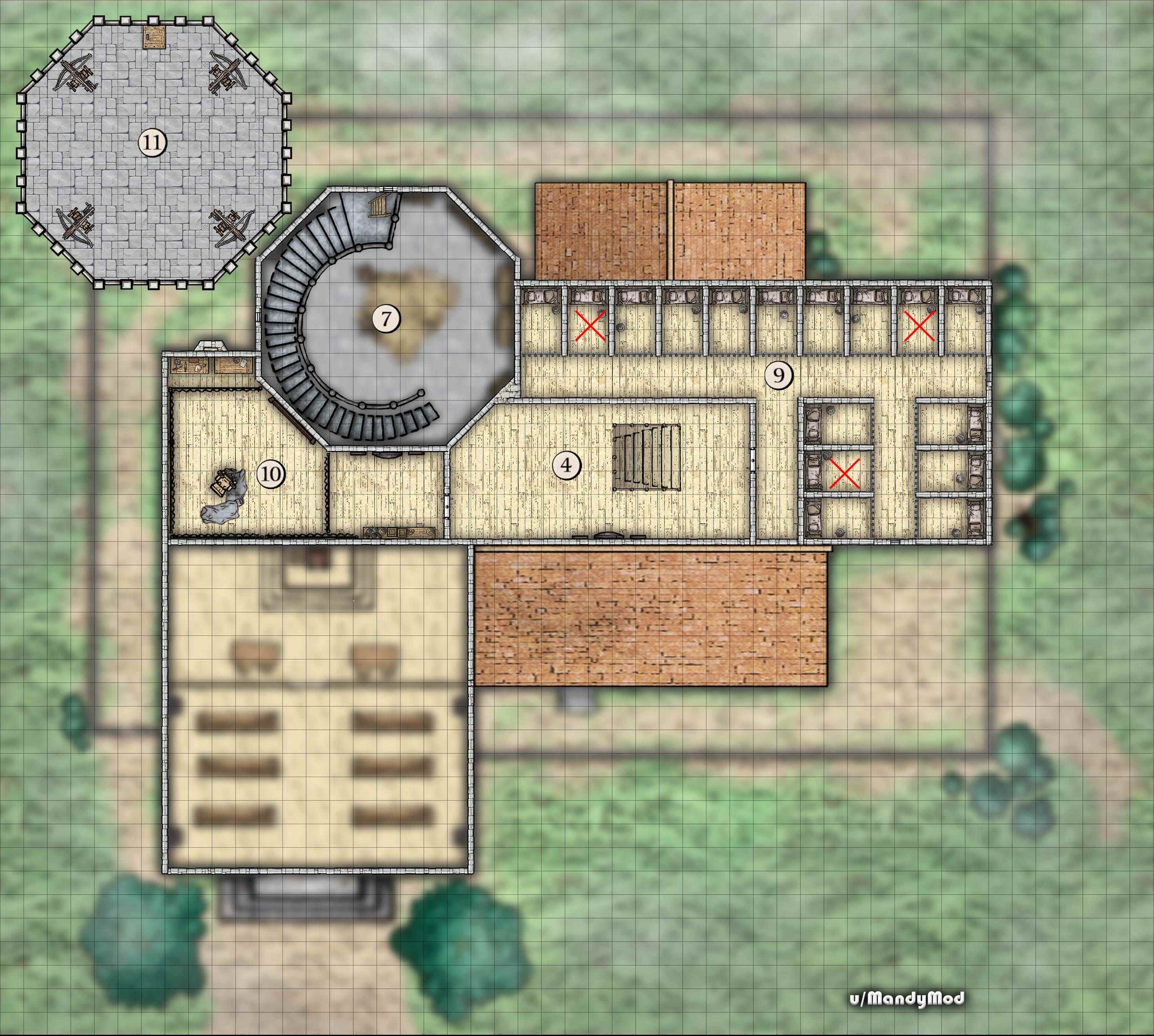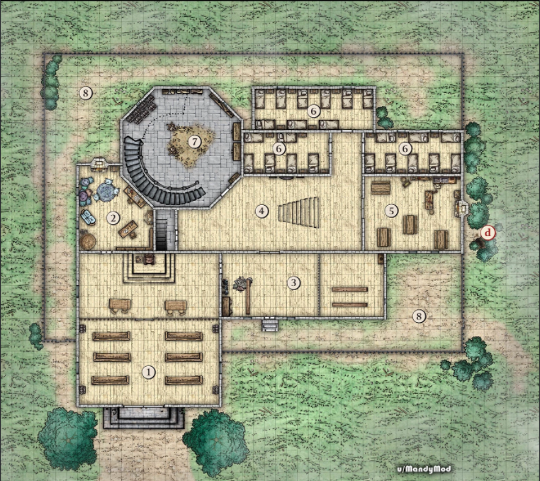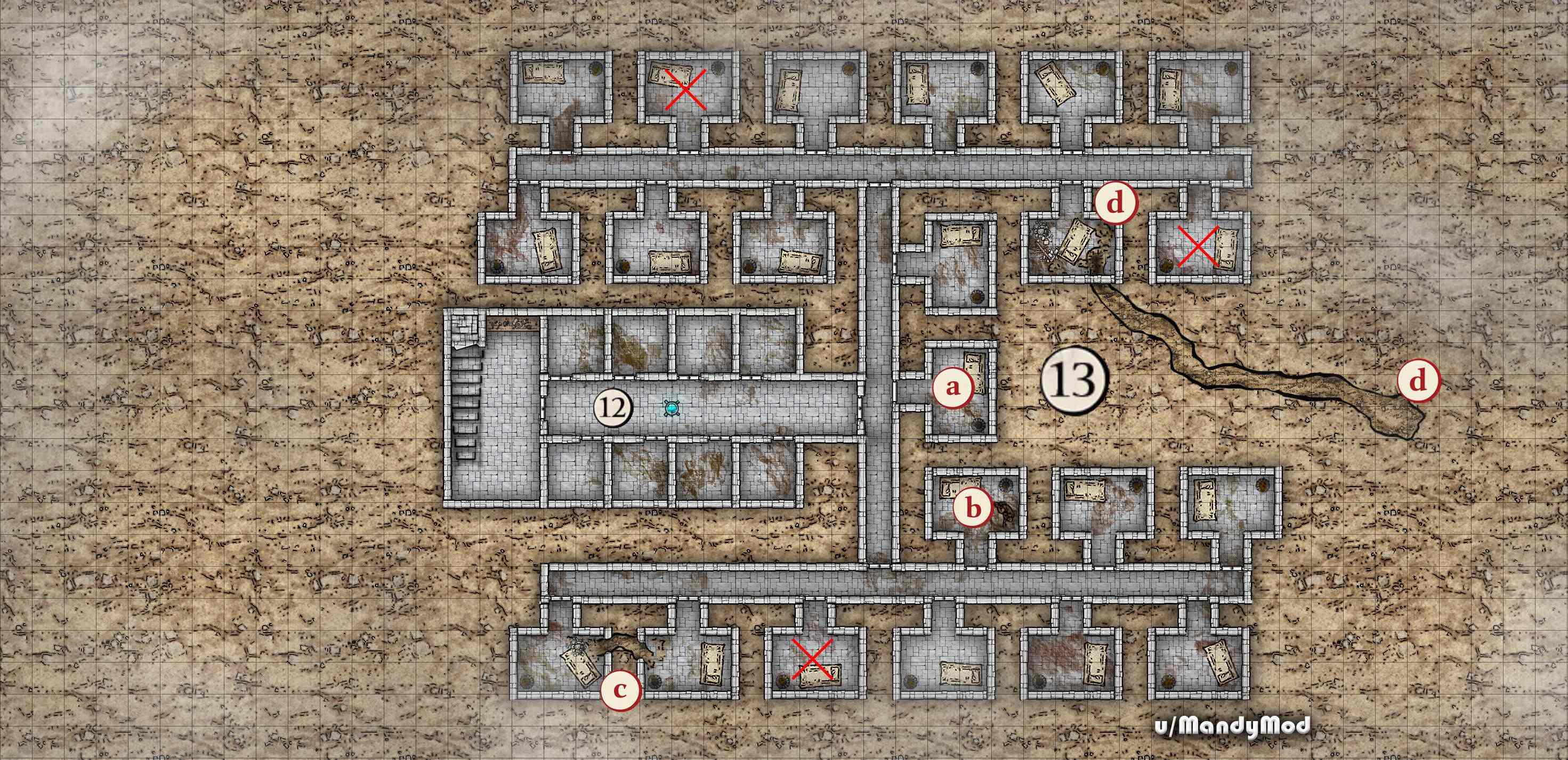 Moi, MandyMod, j'ai créé toutes les cartes de cette aventure en utilisant Adobe Photoshop et le kit de ressources de Mike Schley. Vous trouverez les cartes, en version DM et Player Friendly, sur imgur : ICI