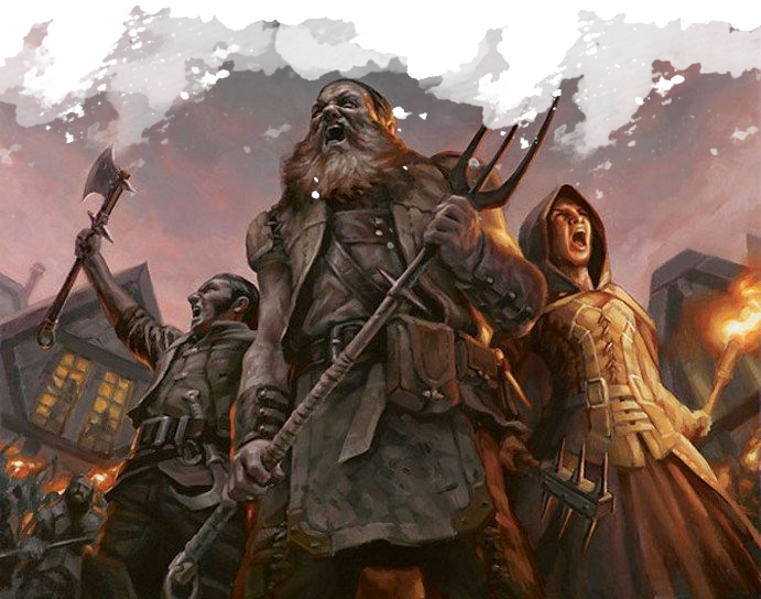 Comme mentionné dans les accroches d'aventure au début de ce module, il est tout à fait possible que la Fête de la Plume ou le Festin de Saint Andral (version revisitée) conduise à des révoltes dans toute la ville contre le bourgmestre, dirigé par Fiona Wachter.
