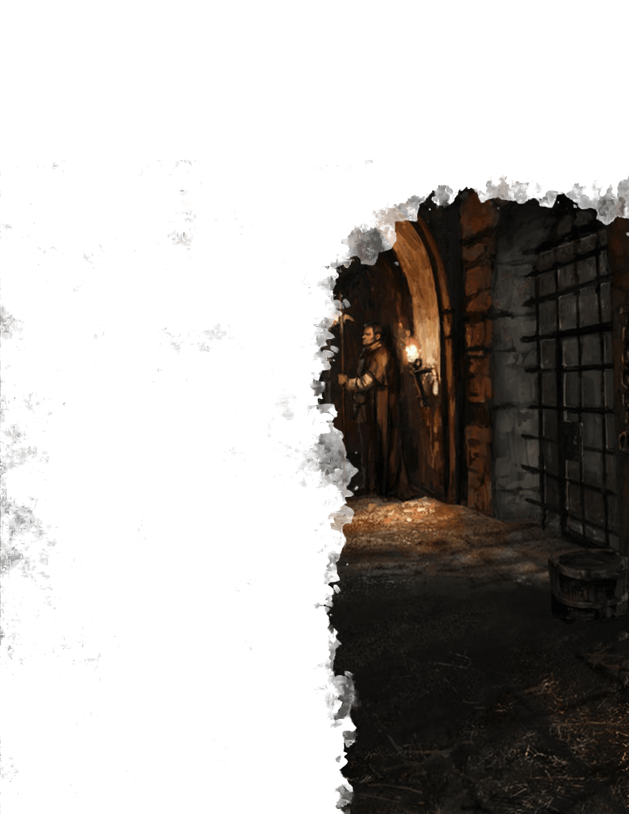 Si un joueur est enfermé dans une des cellules sombres et insonorisées, il peut trouver la clé cachée dans le coulis entre les pierres grâce à un test d'Investigation DD 20. La clé ne fonctionnera pas sur la porte de leur cellule (car elle est verrouillée avec un pêne et un loquet de l'extérieur au lieu d'un trou de serrure standard), mais si les joueurs la gardent lorsqu'ils sont ramenés dans les étages supérieurs de la prison, ils disposent d'un outil utile.
