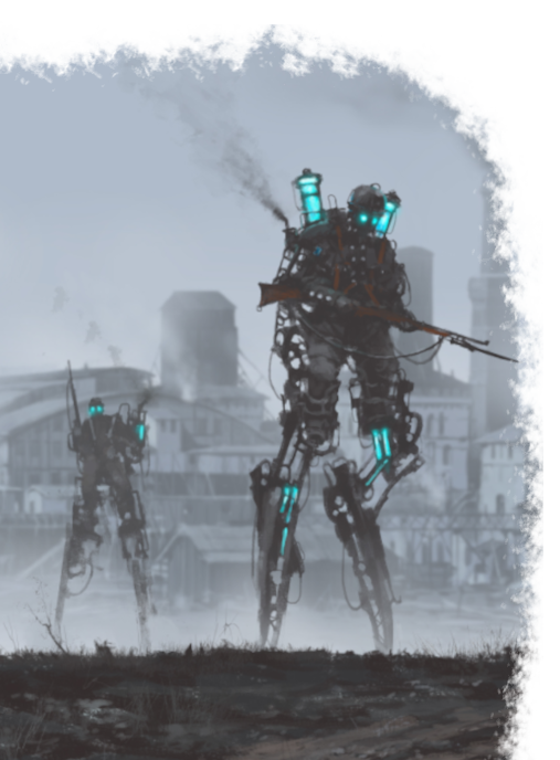 Suits of armor powered by Etherfuel, sporting bronze exoskeletons and clockwork machinery to support far more weight than a mortal could by themselves.