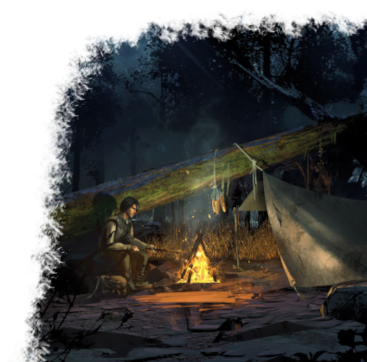 When traveling for an extended period, it will be necessary to find, create, or purchase shelter in order to avoid exhaustion. Without shelter of some kind, no rests of any kind will take effect. Shelter can take one of three forms: Campsites, Natural Shelter, Roadside Inns & Outposts.