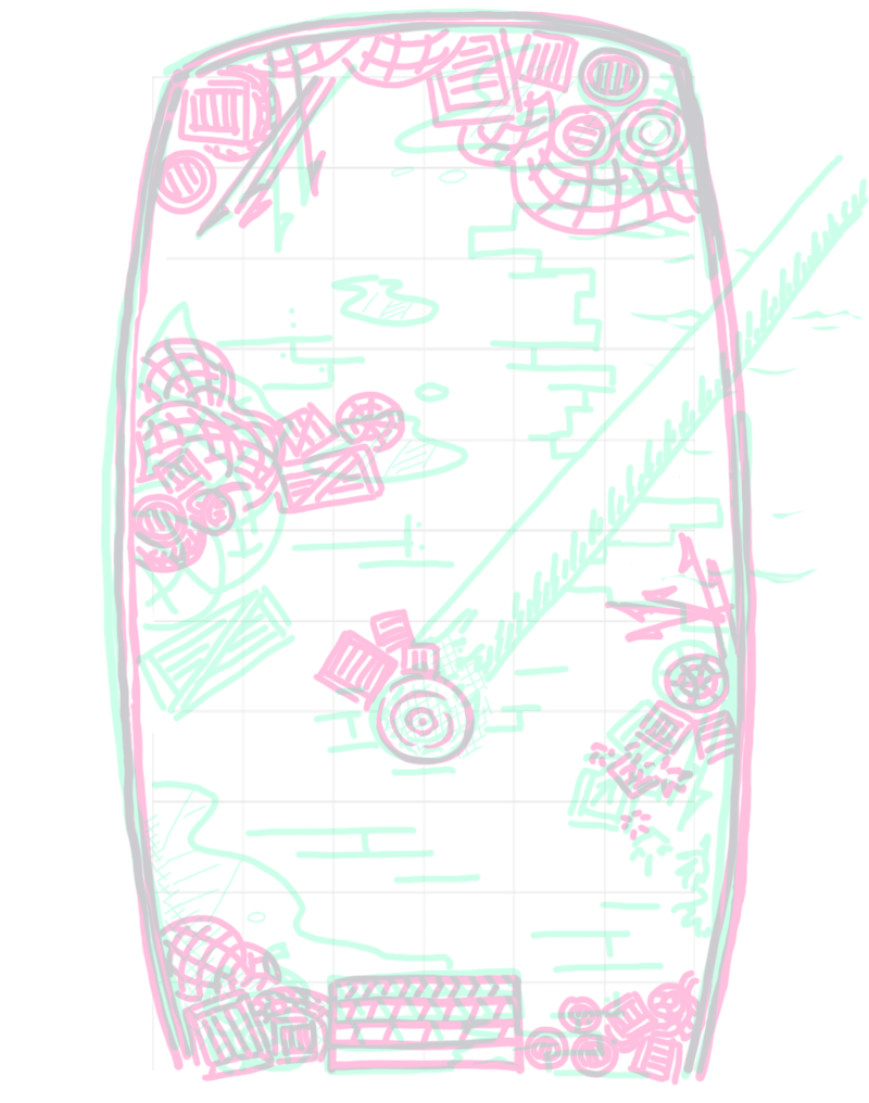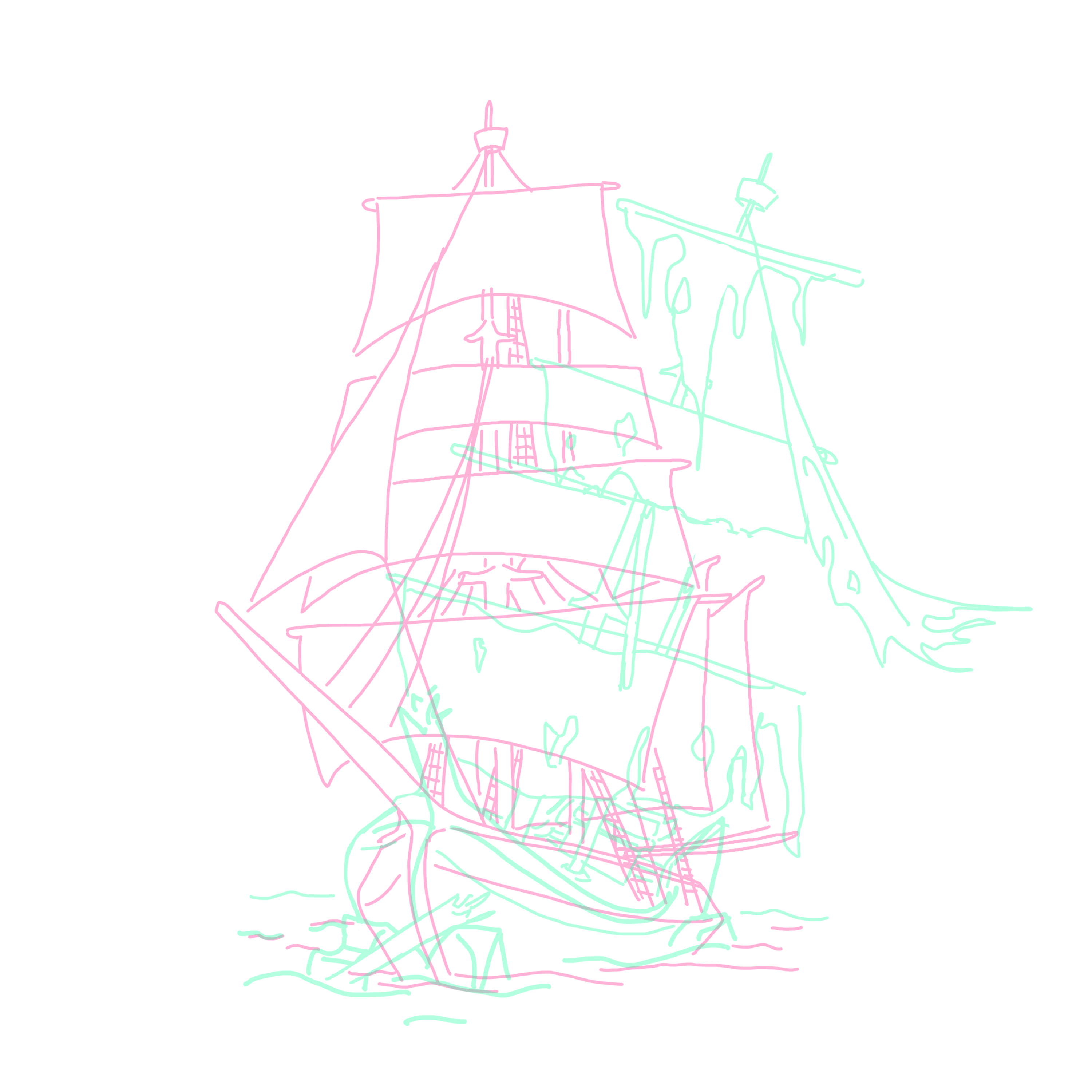Every round, on initiative count 0, the ship is rocked by stormy seas. Characters must make a DC 12 Strength saving throw or be hurled to the port side of the ship (with the stairs positioned at the bottom of the map this is to the right). Every round the DC increases by one. If a creature with red perspective is knocked into a space where the wall or floor is missing from the shipwreck, they do not fall through. Instead, they find themselves on solid floors and against solid walls. They now have green perspective.