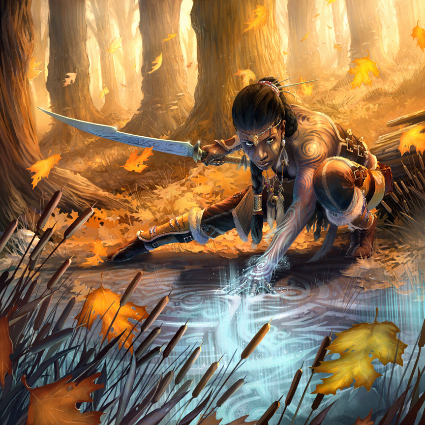 A firbolg wanders her forest home, seeking the aberrations that have been defiling it. Finding their corrosive forms destroying a holy grove, the wanderer focuses the power of nature in her blood. Great tendrils of woody growth extend from her restraining the horrid creatures as she dashes forward swinging her quarterstaff with abandon.