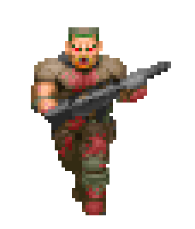 "Once a marine or guard like the protagonist, now a green-haired, Hell-possessed soldier carrying a rifle. The weakest of the enemies in Doom and therefore, the easiest to kill." (Doom Wiki)
