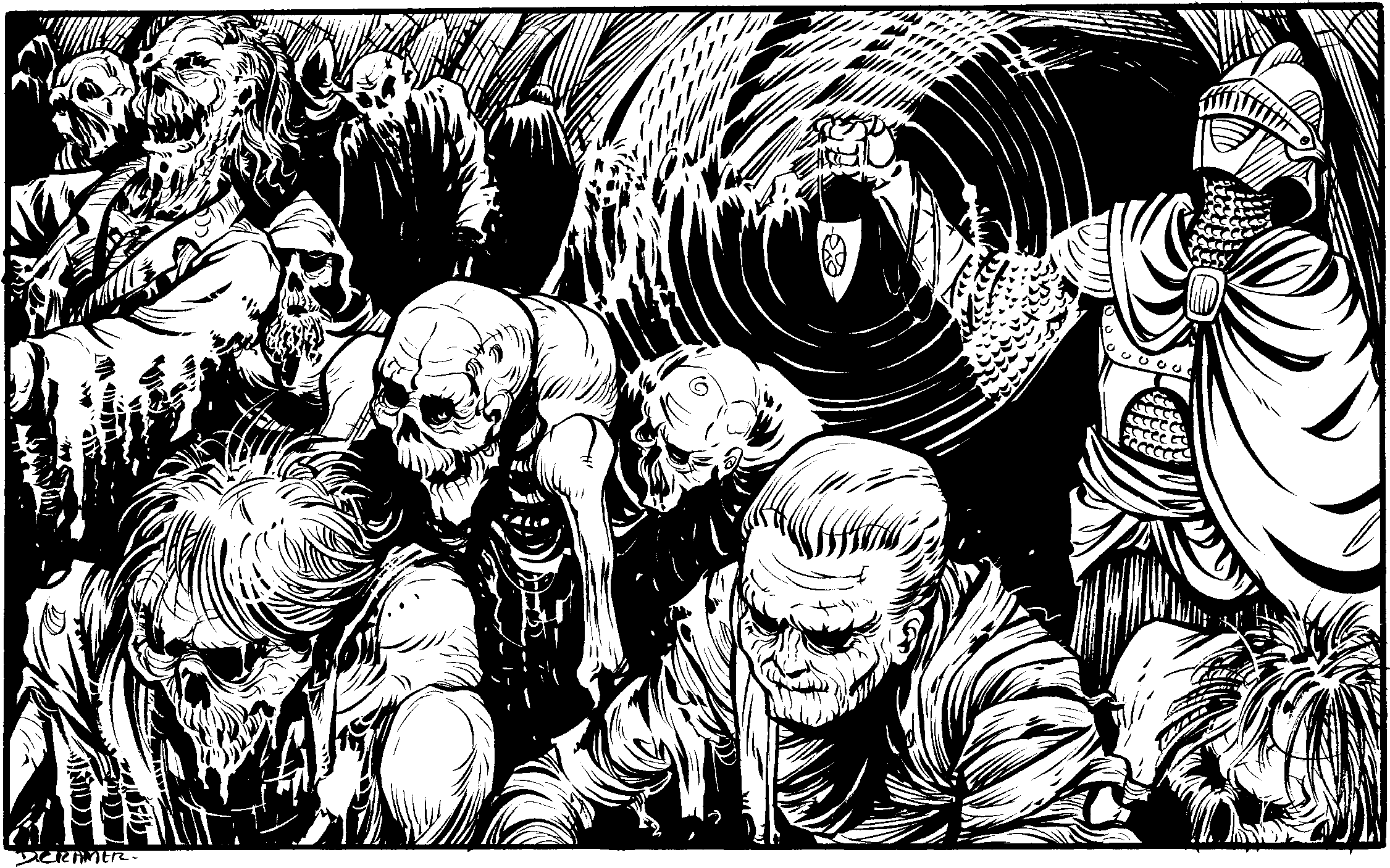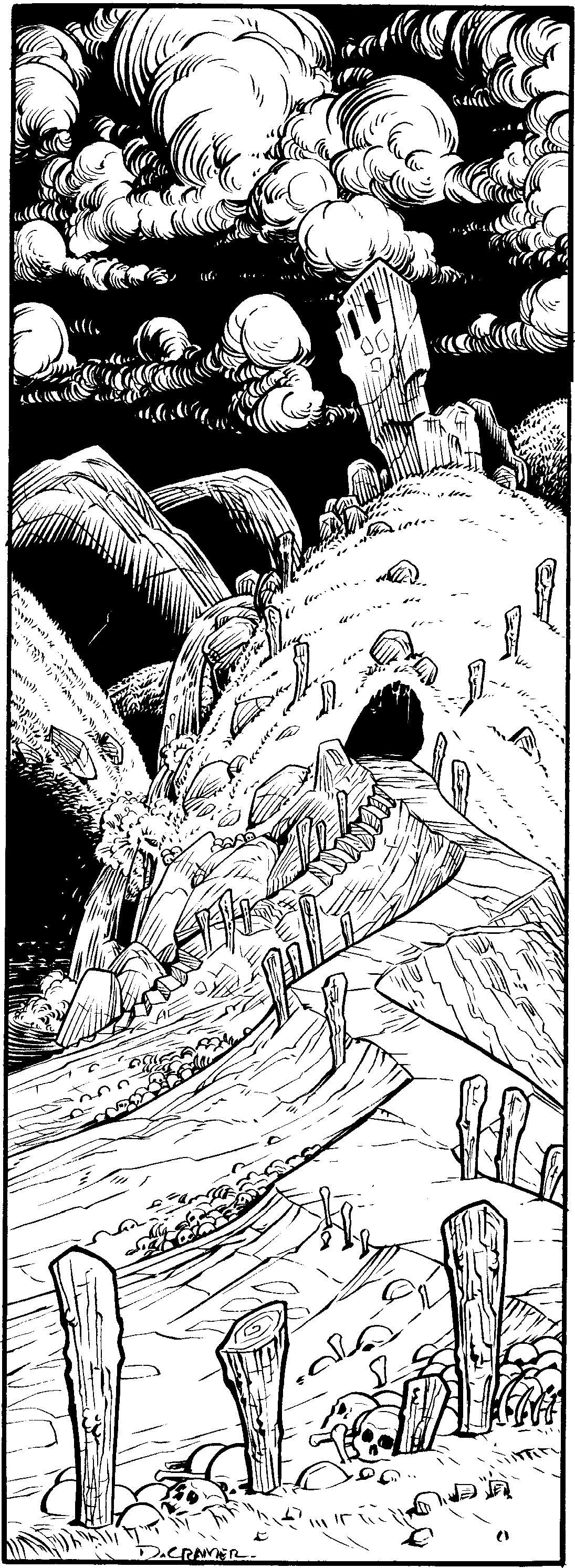 The short campaign of the Reverse Dungeon focuses on the dungeon complex below a large hill. Natural geological processes formed a series of limestone caverns hundreds of thousands of years in the past. An ancient culture subsequently expanded the caverns through mining. These mines later served as home for several demihuman races, until the hill and caverns were claimed by an evil wizard named Blazeth some 600 years ago. Blazeth expanded the mines and caverns into a true dungeon complex, and he capped the hillock with the traditional wizard’s tower. Today, the tower stands in ruins, various monsters have reinhabited the upper levels, and most outsiders assume that Blazeth is long gone. This assumption is false.