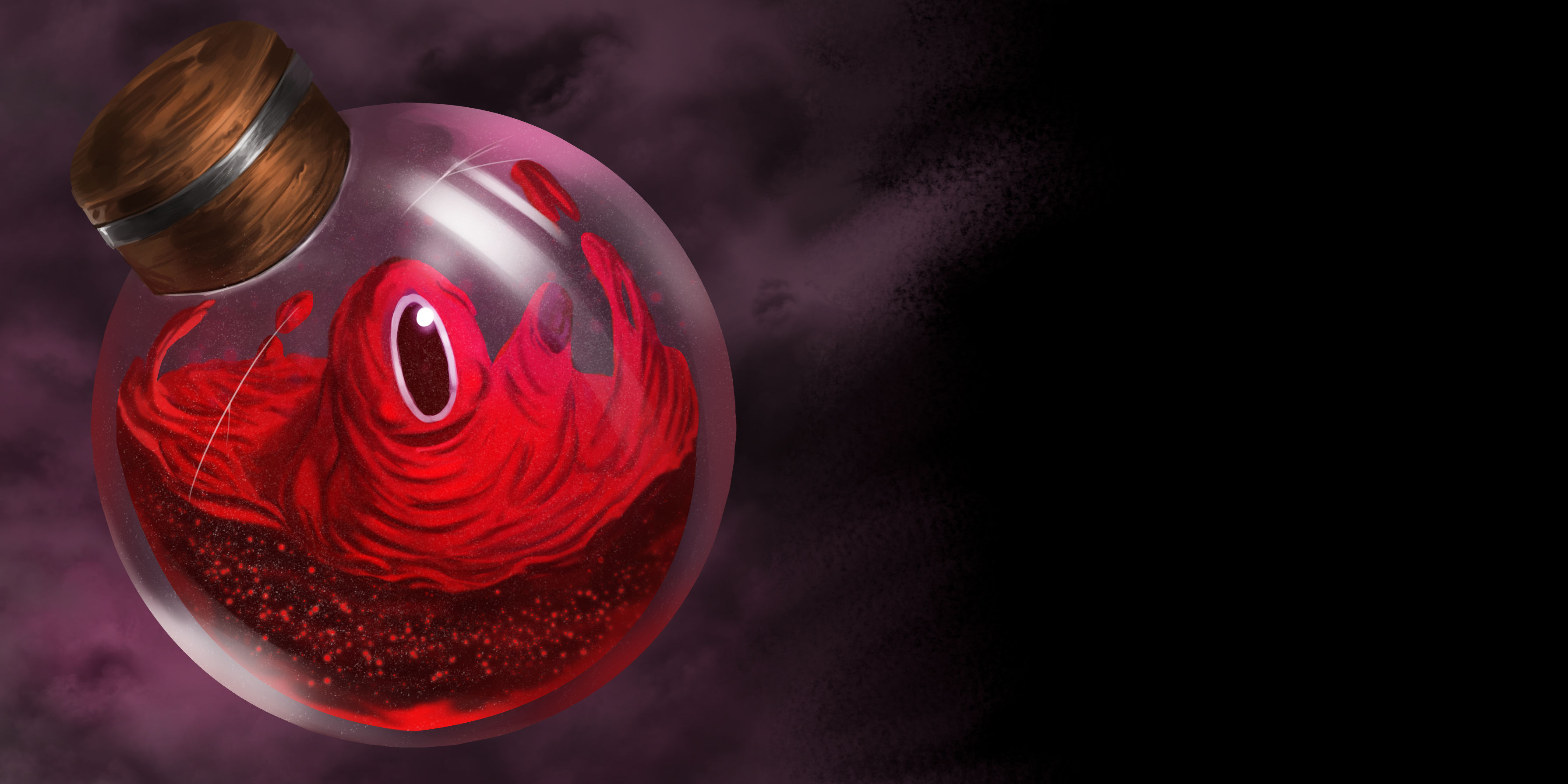 DRINK ME. The Living Potion of Healing jumps into the mouth of a willing or unconscious creature, and is drank. That creature heals for 2d4 + 2 health, and the Living Potion dies.