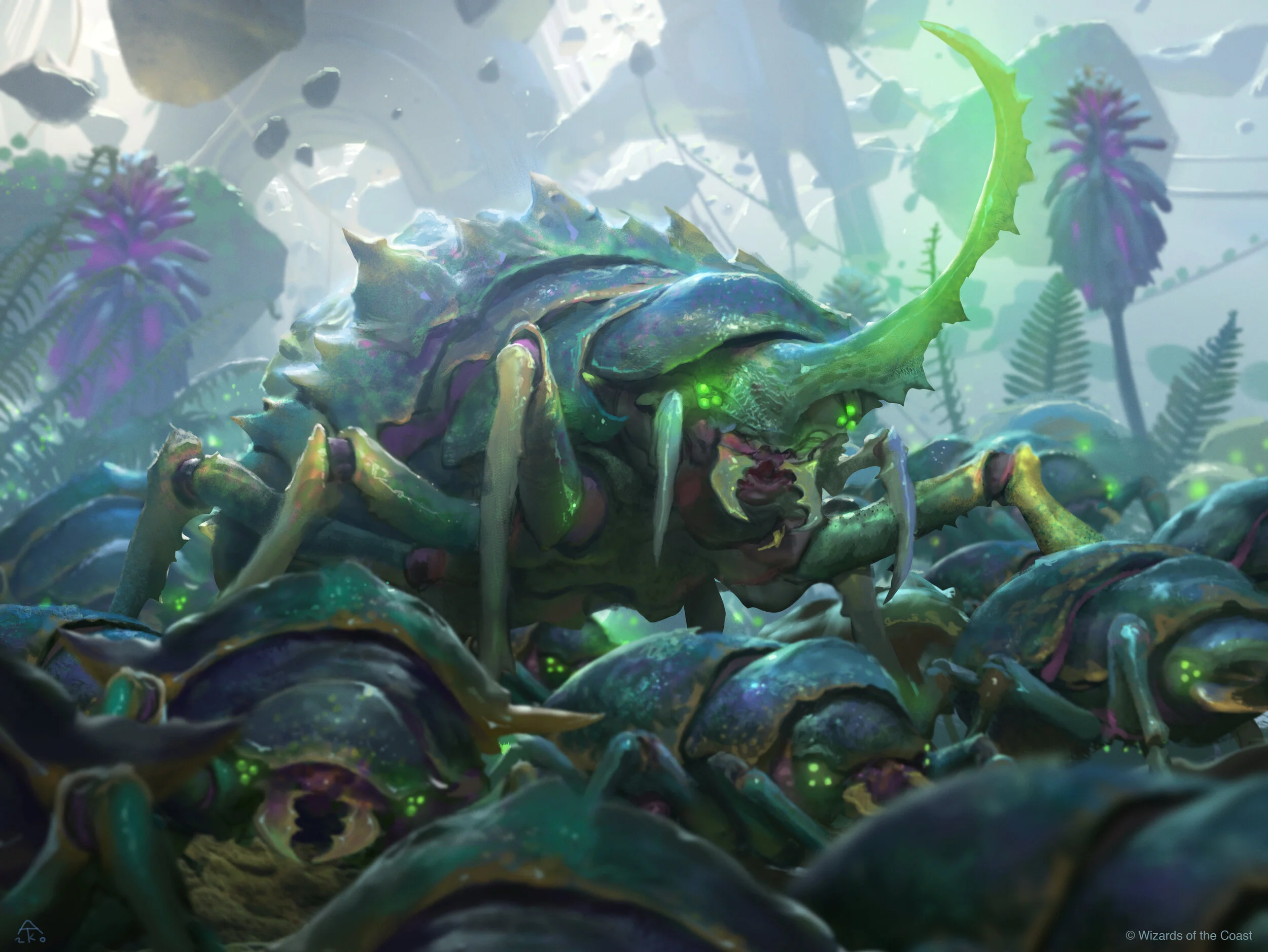 Unlike their relatives, the carnage scarab is a vicious predator that actively hunts for food in massive swarms that have been known to hold up to 50 to 100 members at its largest.