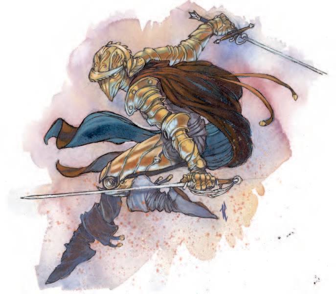 Blade Dancers are rogues who utilize the art, footwork, and tempo of dancing in combination with precisely timed strikes and deadly accuracy to become a Whirlwind of steel. Many blade dancers often give themselves the guise of a dancer or performer, to trick those who are enthralled by their performances to let their guard down, making their sneak attacks much more effective.