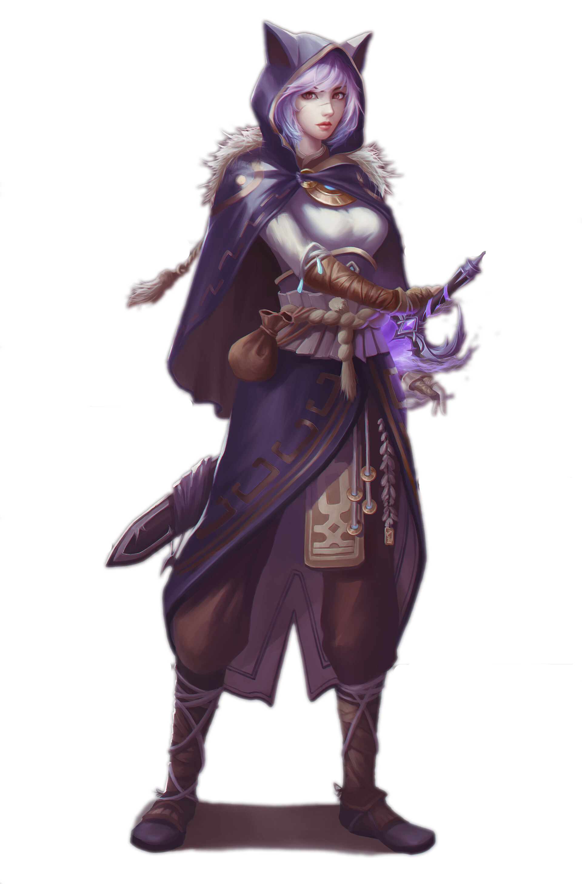 Mysterious humanoids from the secluded mountains and deep forest of the Seishin isles, the nekomata are typical members of the Kemono Empire, oppressed due to their inborn control of the undead, and the fact that they are not kitsune. Preferring to avoid the watchful gaze of their empress, the naekomata live in small secluded communities and clans, leaving only to complete destined tasks or to recover supplies for their kin.